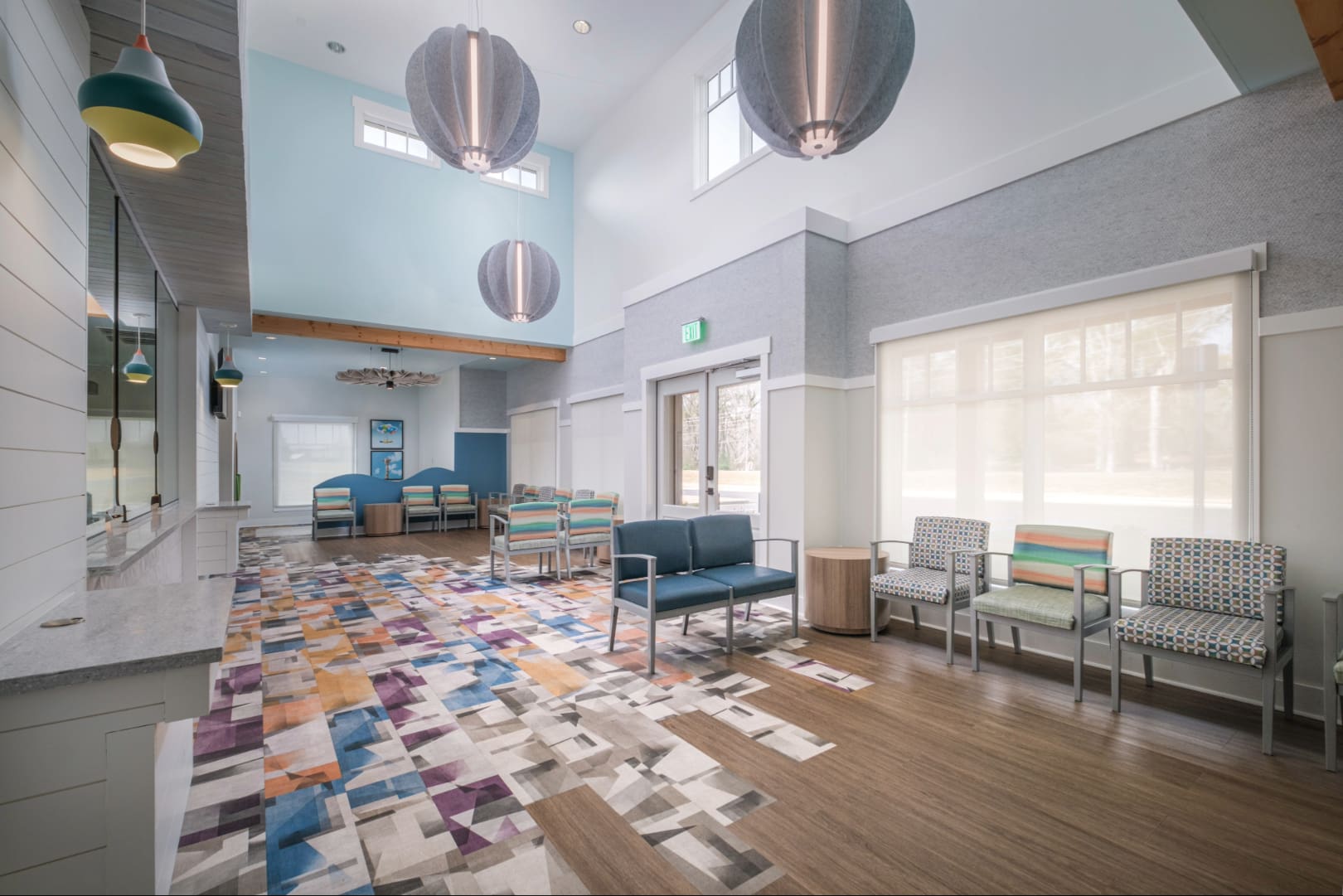 This project was uniquely challenging due to our client’s work with special needs children, particularly those with autism who might react strongly to visual stimuli. We addressed this by incorporating a side entrance with a separate check-in/check-out desk to avoid the main waiting room and reduce the overall exposure to stimuli in the environment.